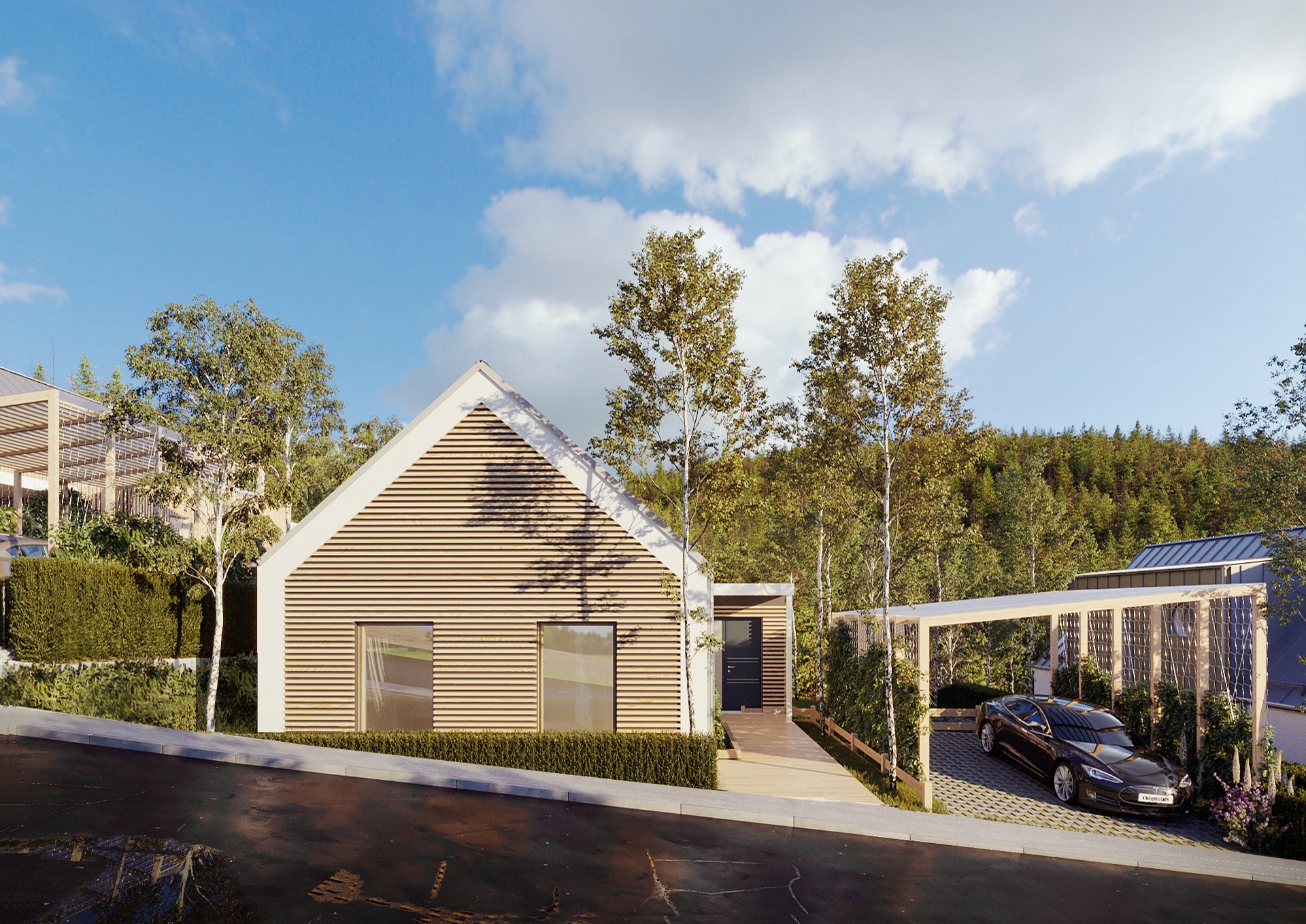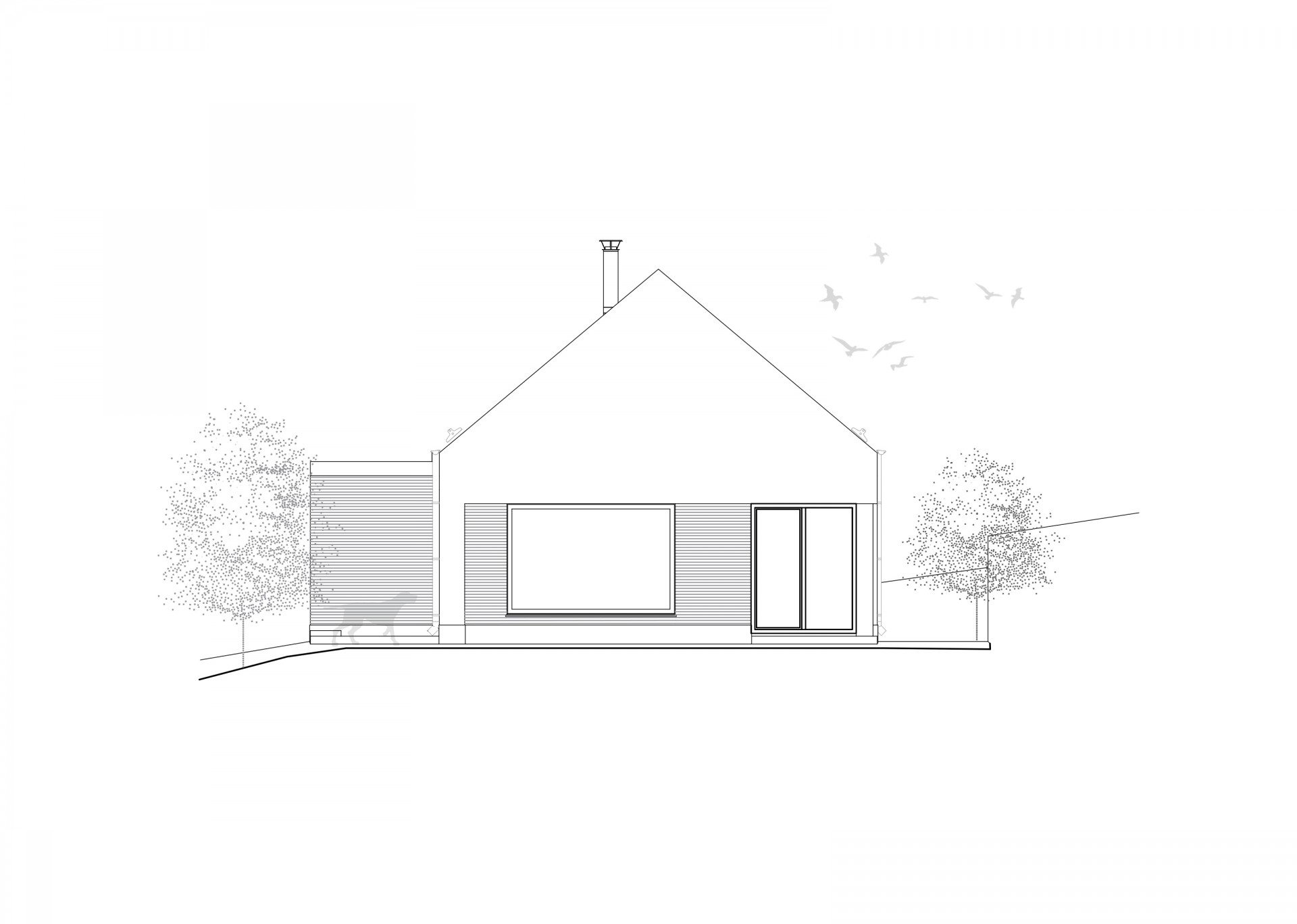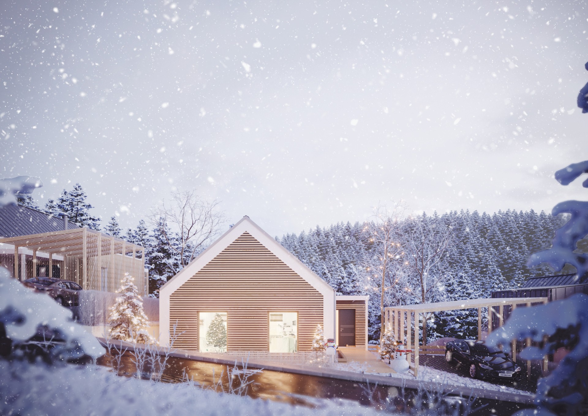 Dom "Ani veľký ani malý" je určený pre 4 člennú rodinu. Vstupná chodba dispozíciu rozdeľuje na nočnú a dennú zónu. Každá izba v dome je bohate presvetlená a komunikuje tak s exteriérom. Jemná členitosť hmoty vytvára tzv. "Outdoor room" na terasách , kde počas letného alebo prechodného obdobia viete vytvoriť záhradnú jedáleň alebo letnú kuchyňu, stačí pridať pracovný pult a gril :) .