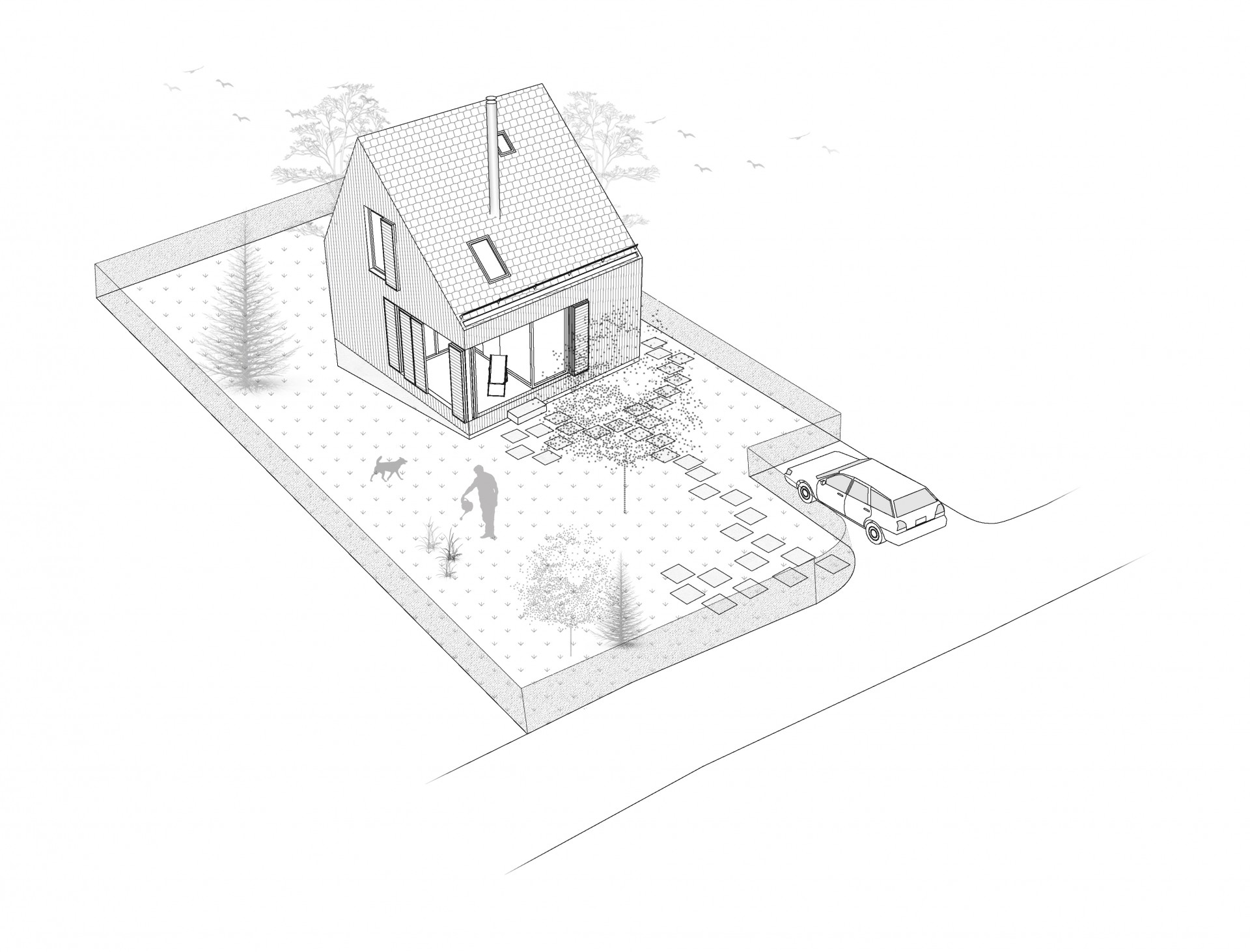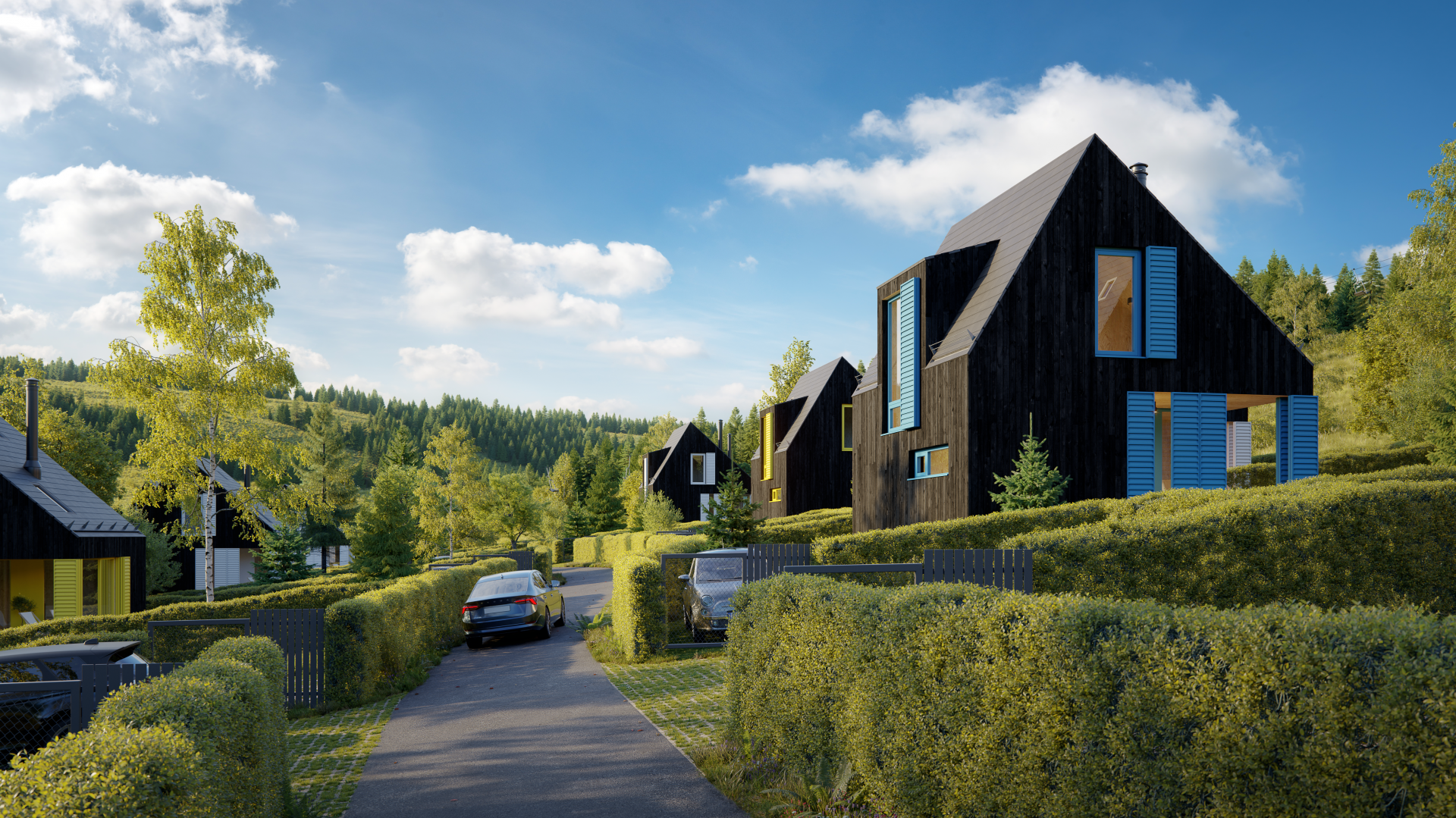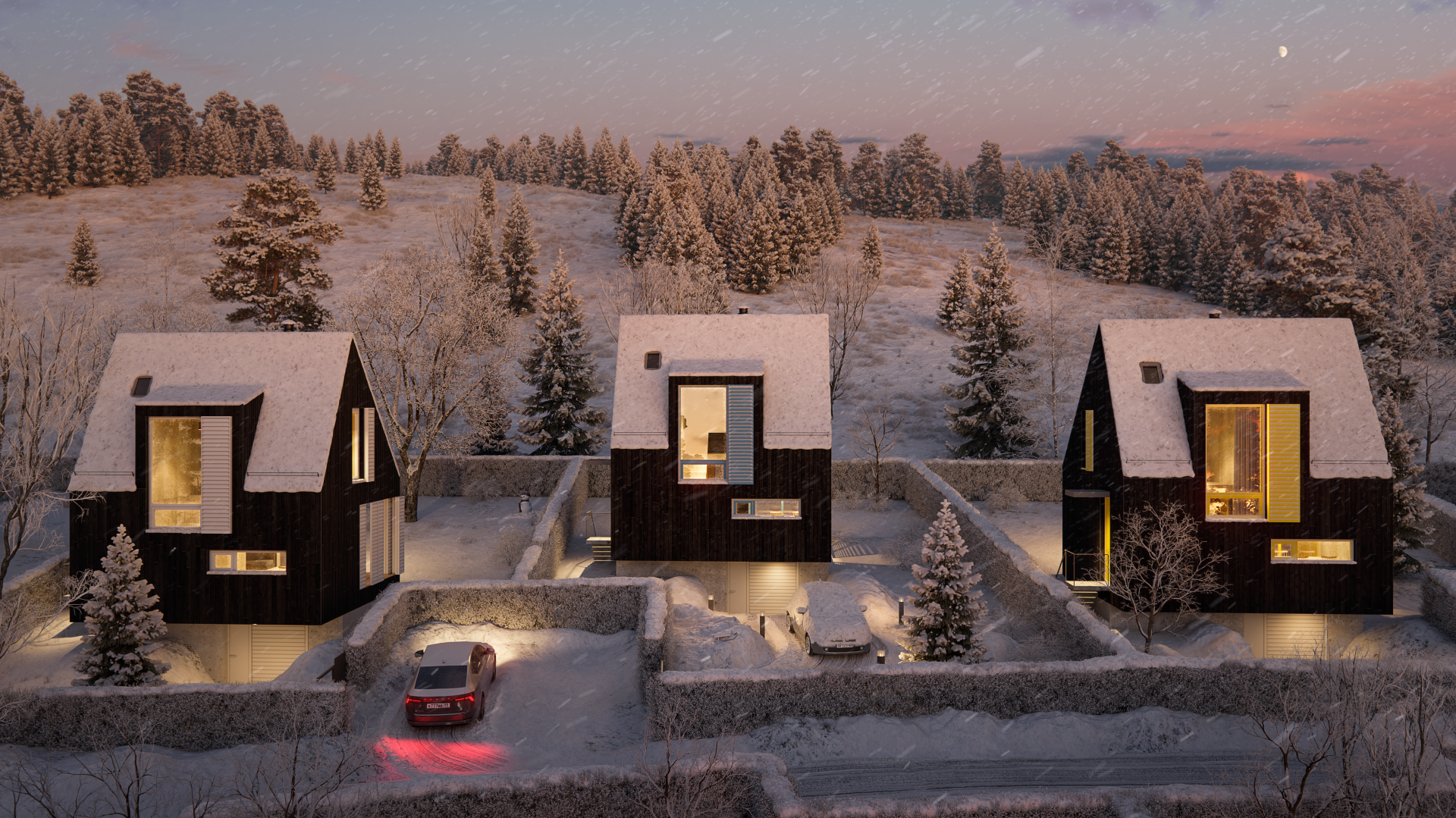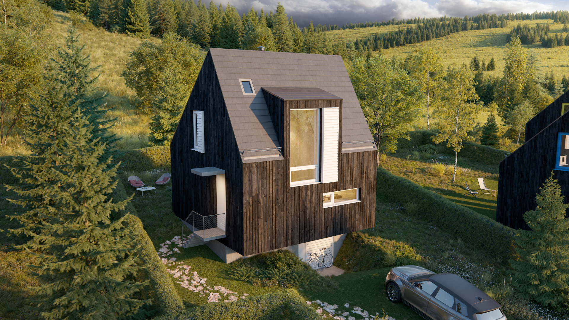 Chata s tradičnými prvkami na celoročné bývanie je určená pre 4 až 5 ľudí. Prízemie chatiek pozostáva zo zádveria, príručného šatníku a WC, kuchyne s jedálňou a obývacej izby. V zálive medzi obývačkou a jedálňou sa nachádza vonkajšia terasa s kontaktom na terén, ktorá sa bude dať uzatvoriť drevenými posuvnými panelmi. Pri schodisku obývačky sú umiestnené kachle, prípadne menší krb. Podkrovie je prístupné dvojramenným schodiskom na ktorého medzipodeste je osadený vikier so zasklenou stenou s výhľadom do údolia. Dispozícia podkrovia pozostáva z dvoch izieb a kúpelne s WC. Konštrukcia strechy chatky je sedlová, s rôznymi sklonmi – 39 až 55°.