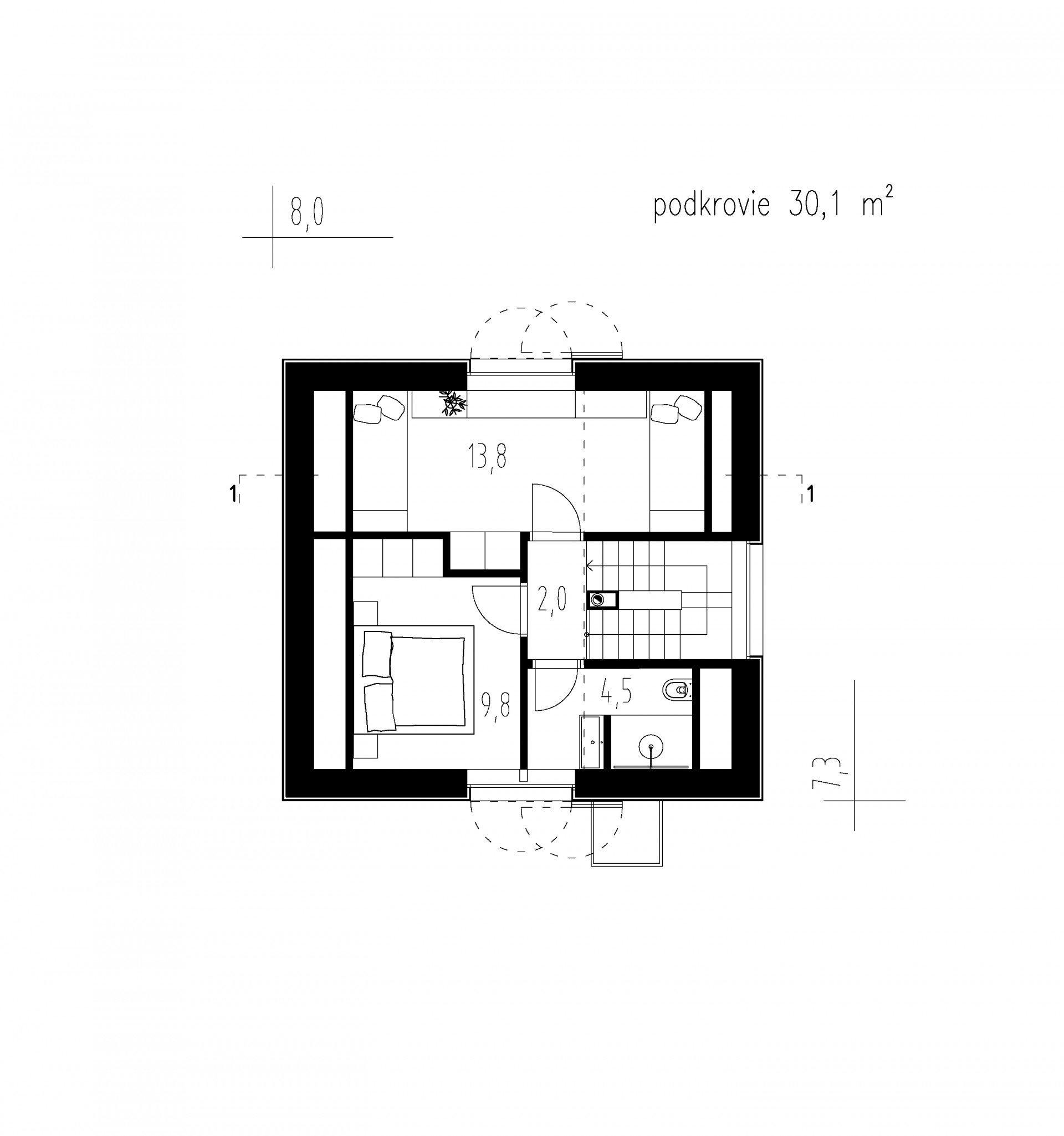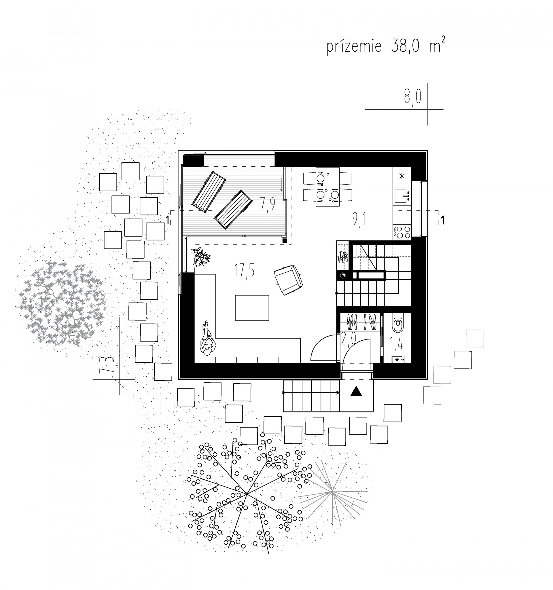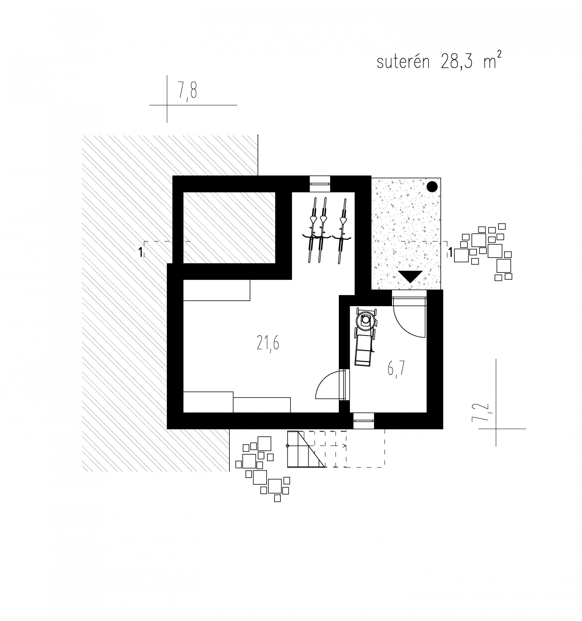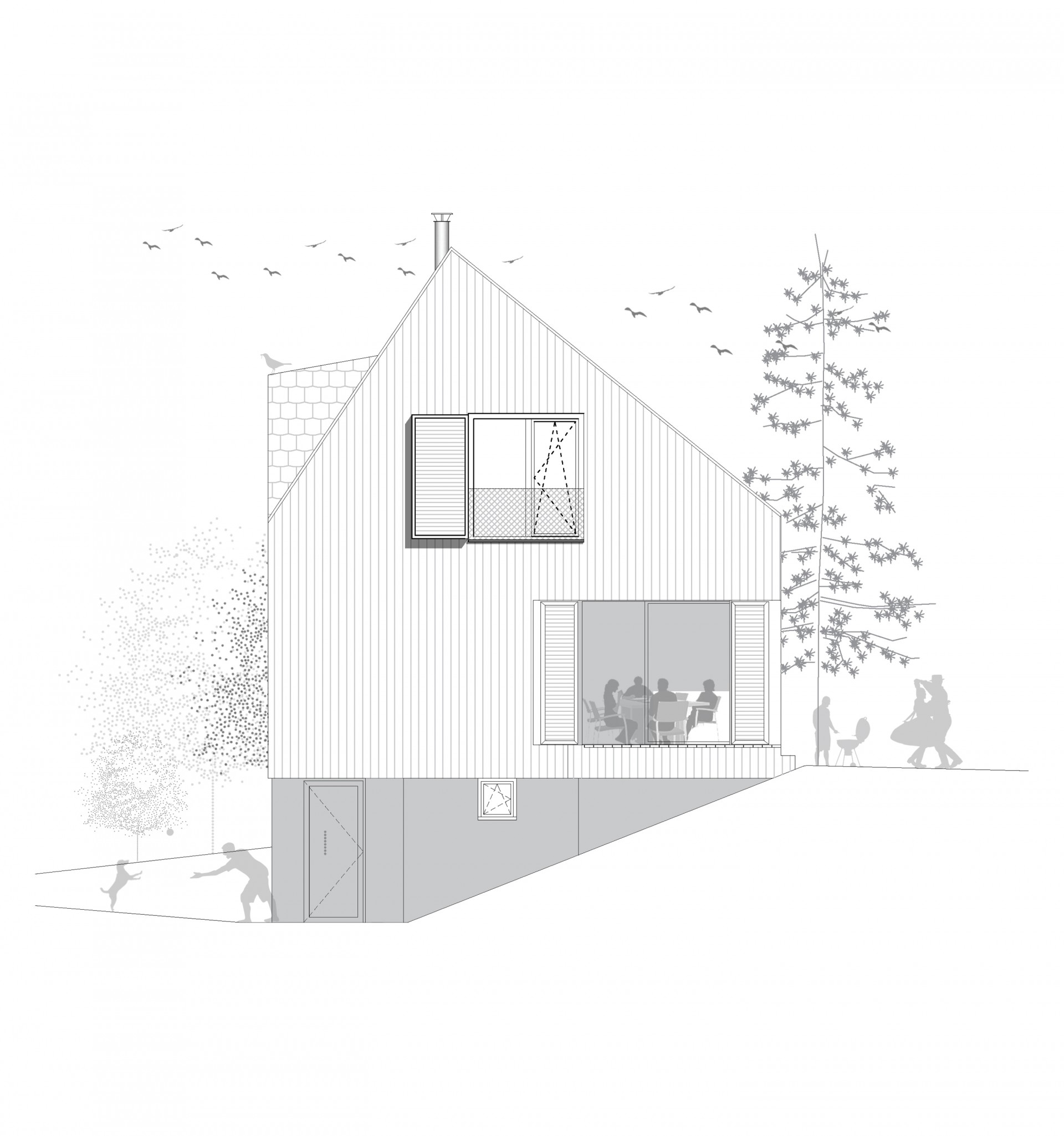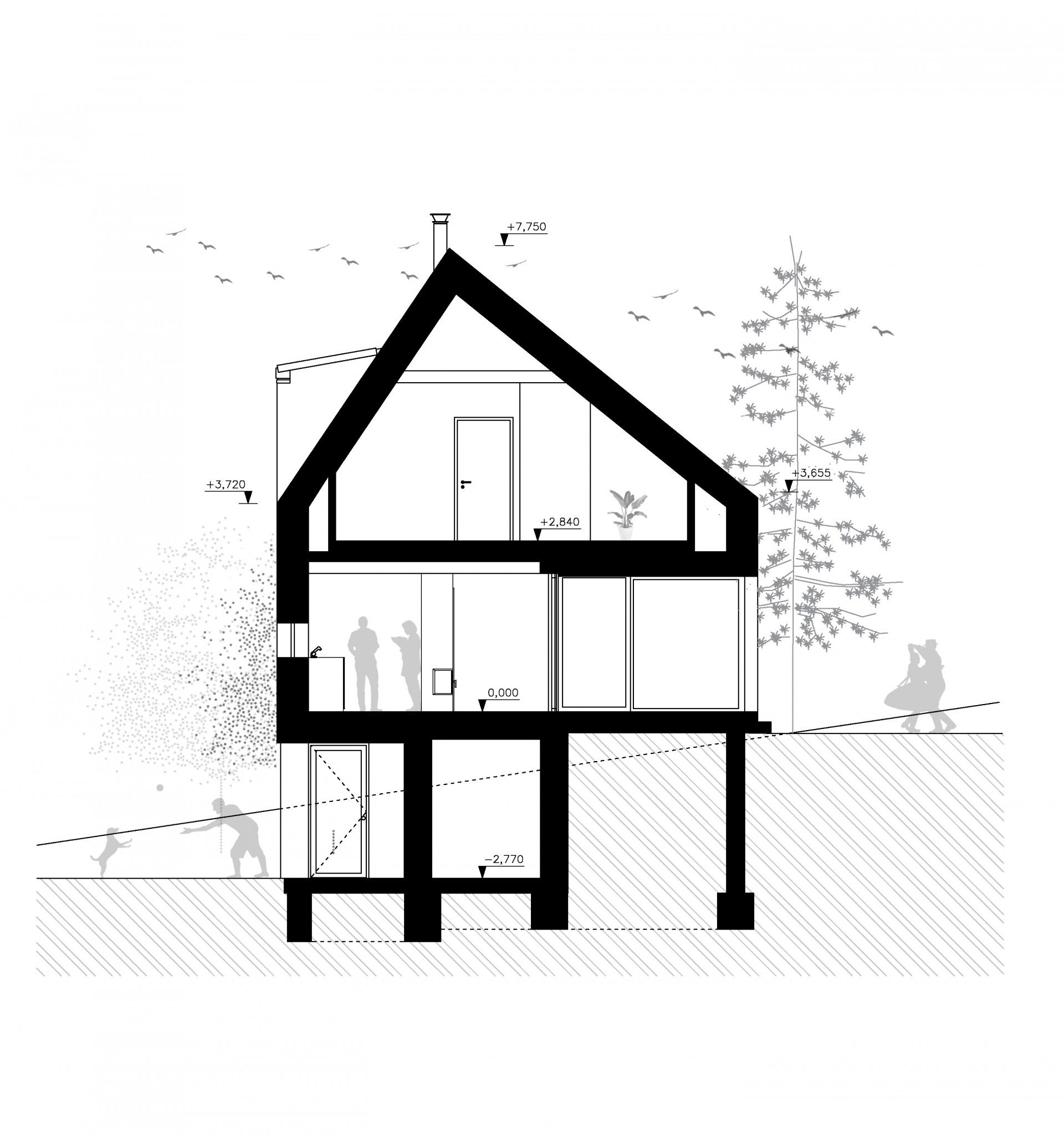 Chata s tradičnými prvkami na celoročné bývanie je určená pre 4 až 5 ľudí. Prízemie chatiek pozostáva zo zádveria, príručného šatníku a WC, kuchyne s jedálňou a obývacej izby. V zálive medzi obývačkou a jedálňou sa nachádza vonkajšia terasa s kontaktom na terén, ktorá sa bude dať uzatvoriť drevenými posuvnými panelmi. Pri schodisku obývačky sú umiestnené kachle, prípadne menší krb. Podkrovie je prístupné dvojramenným schodiskom na ktorého medzipodeste je osadený vikier so zasklenou stenou s výhľadom do údolia. Dispozícia podkrovia pozostáva z dvoch izieb a kúpelne s WC. Konštrukcia strechy chatky je sedlová, s rôznymi sklonmi – 39 až 55°.