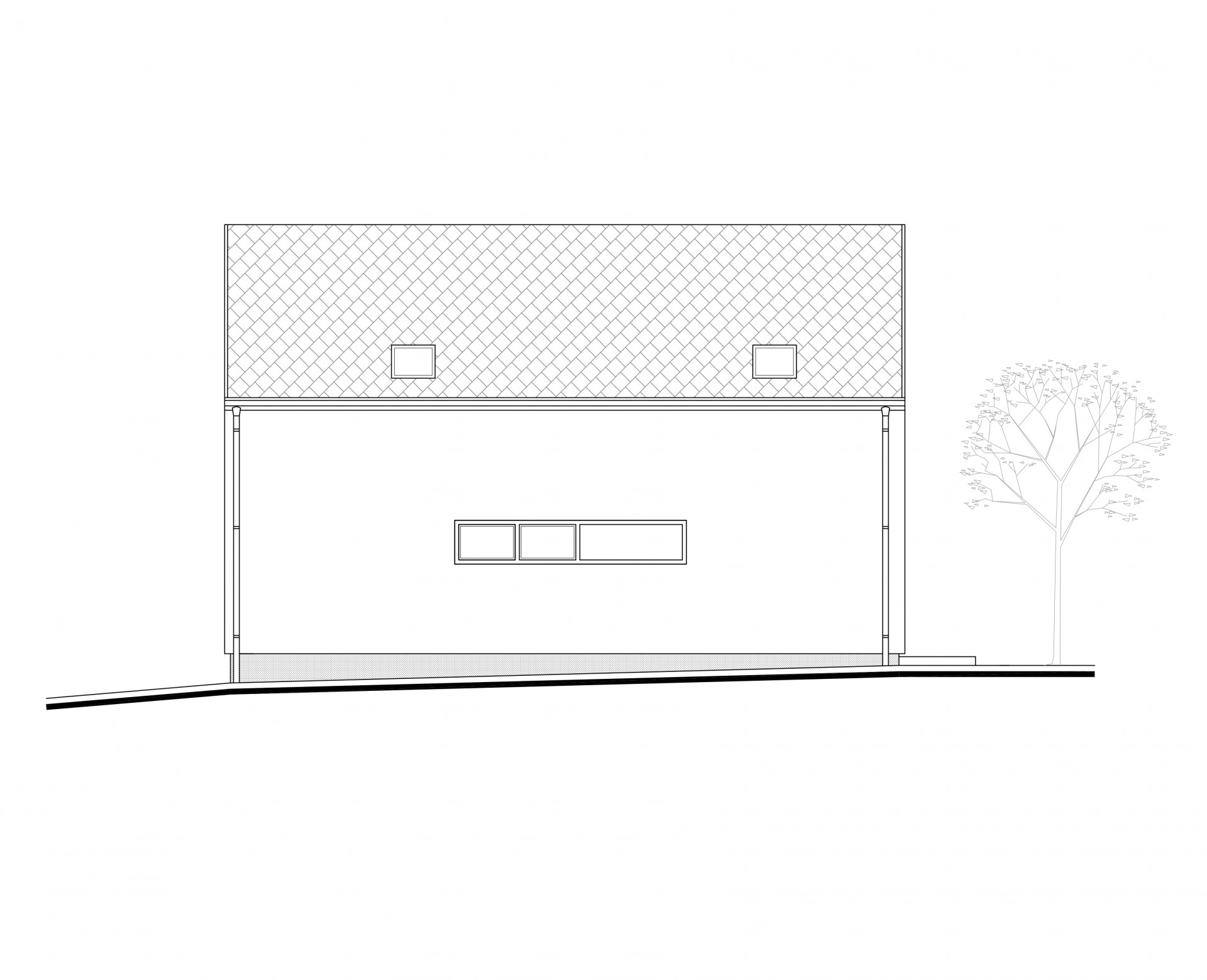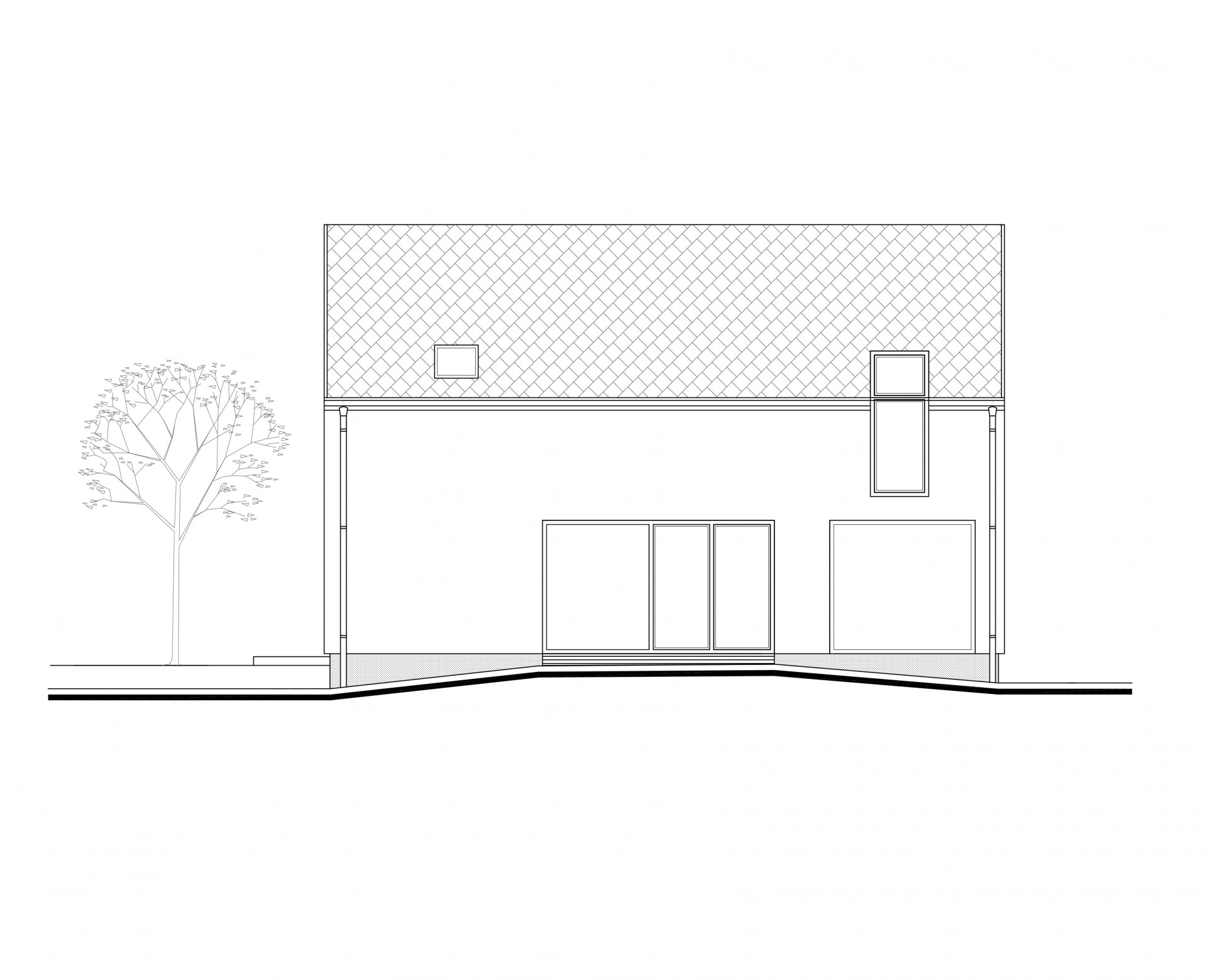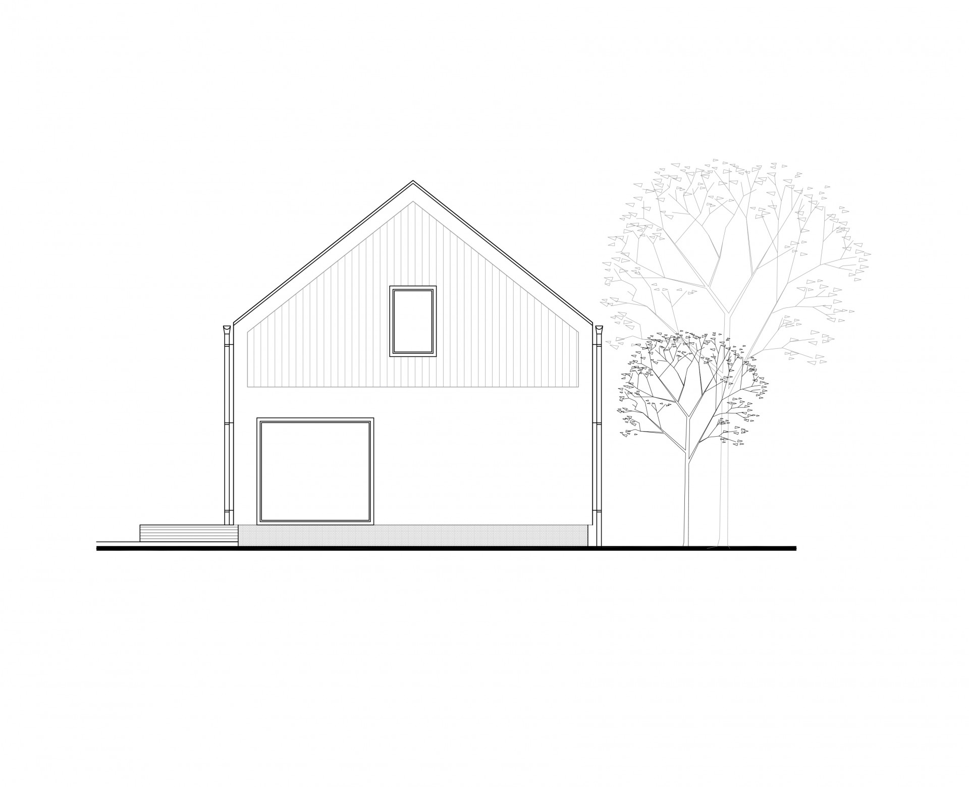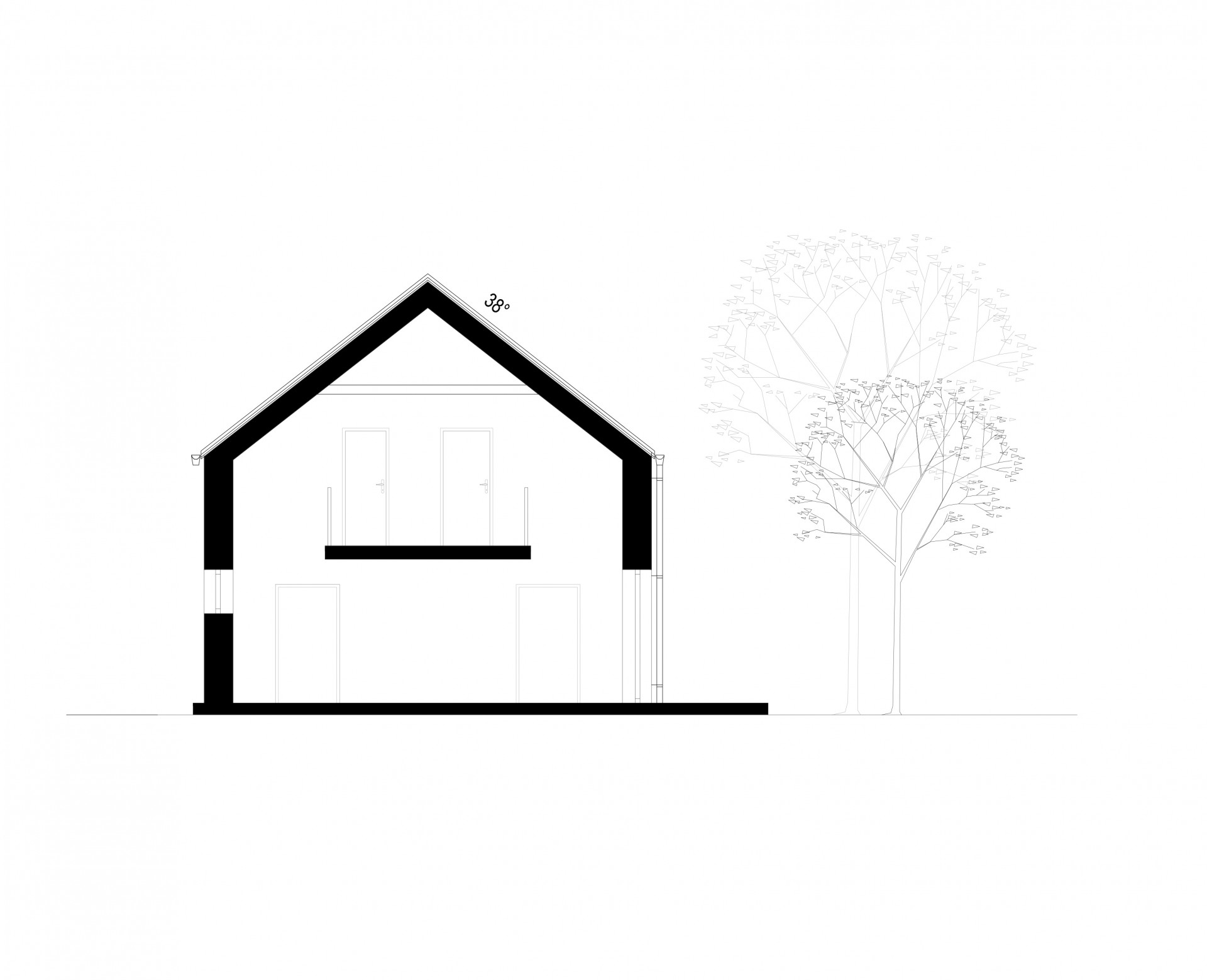 Jednoduchý a predsa špecifický dom zaujme čistým architektonickým riešením. Najvýraznenším prvkom fasády je citlivo umiestnený drevený raster v hornej časti domu od záhrady, ktorý evokuje aj vďaka pocitu plasticity prevažnej časti fasády, tradičnú architektúru. Flexibilnosť dispozície prízemia umožňuje vytvoriť otvorený priestor dennej časti alebo uzavrieť kuchyňu s jedálňou ako samostatný priestor. Obývacia izba s napojením na terasu poskytuje úzky kontakt užívateľa so zeleňou. Zaujímavé premostenie medzi nočnými izbami na poschodí dodáva interiéru vertikálnu vzdušnosť, optické prepojenie medzi podlažiami a sekundárne presvetlenie týchto priestorov z prízemia. Tento premosťovací prvok môže slúžiť ako herňa, pracovňa alebo čitáreň. Nočné izby sa navzájom nerušia a využívajú spoločnú kúpeľňu.