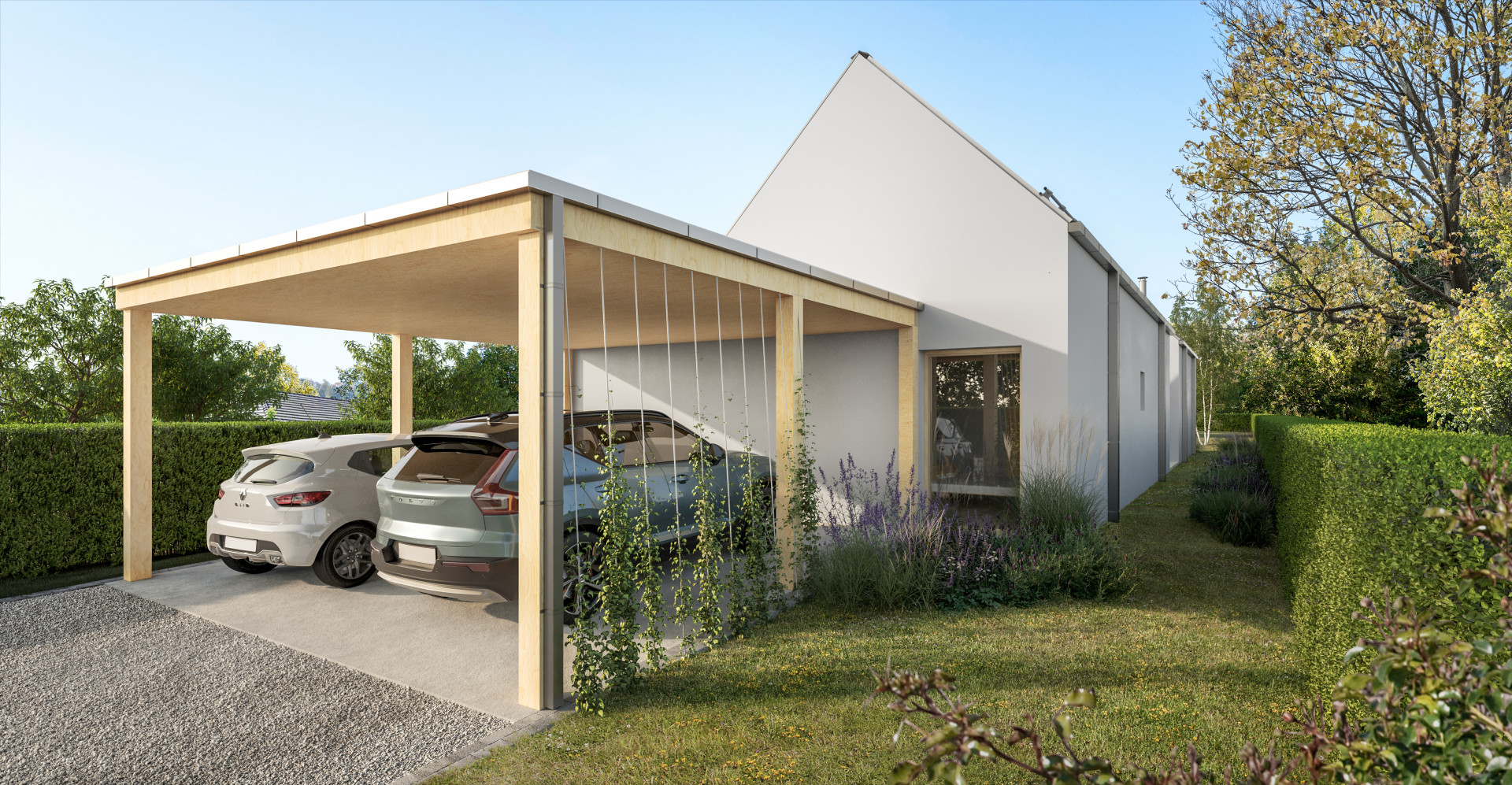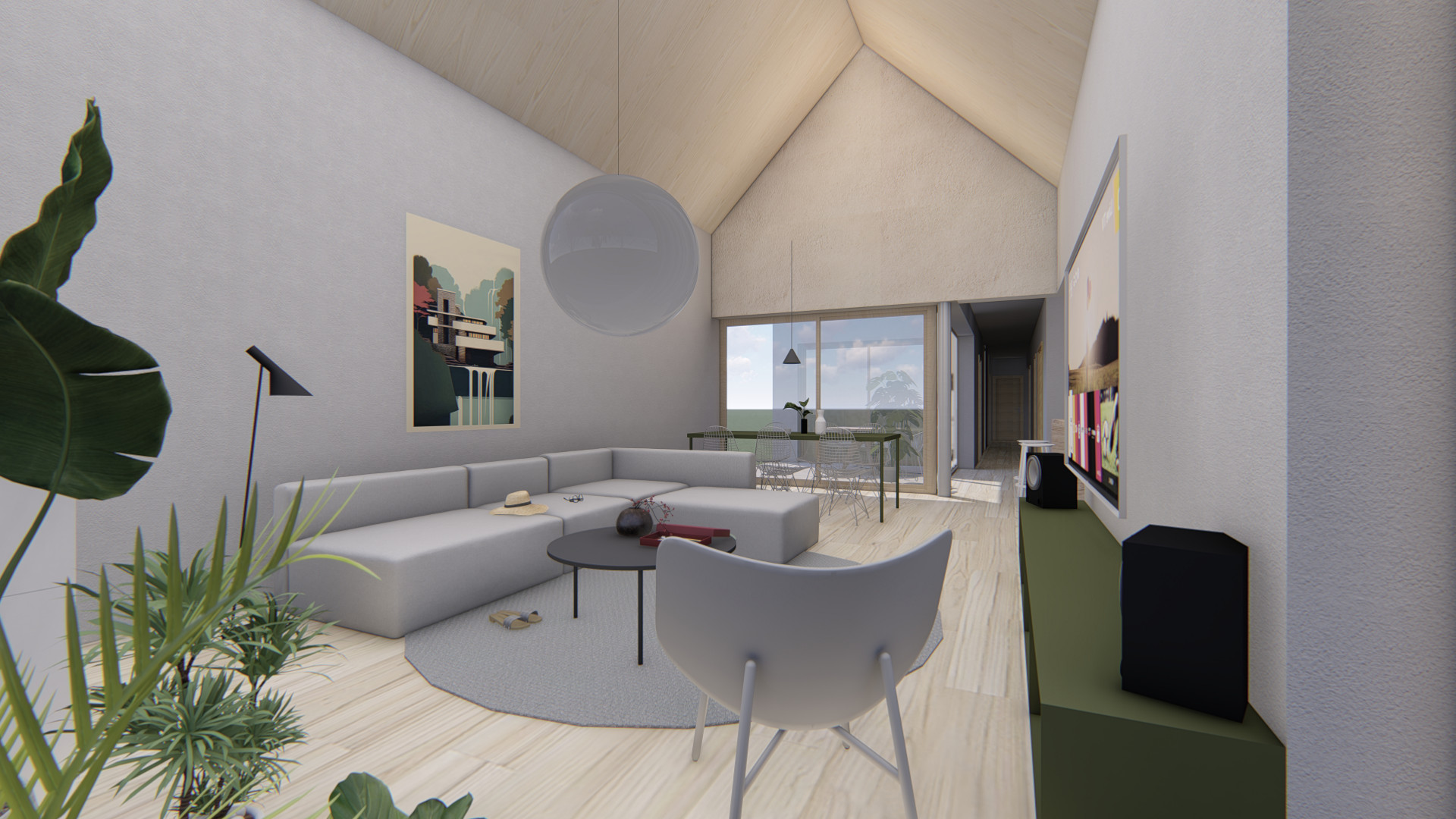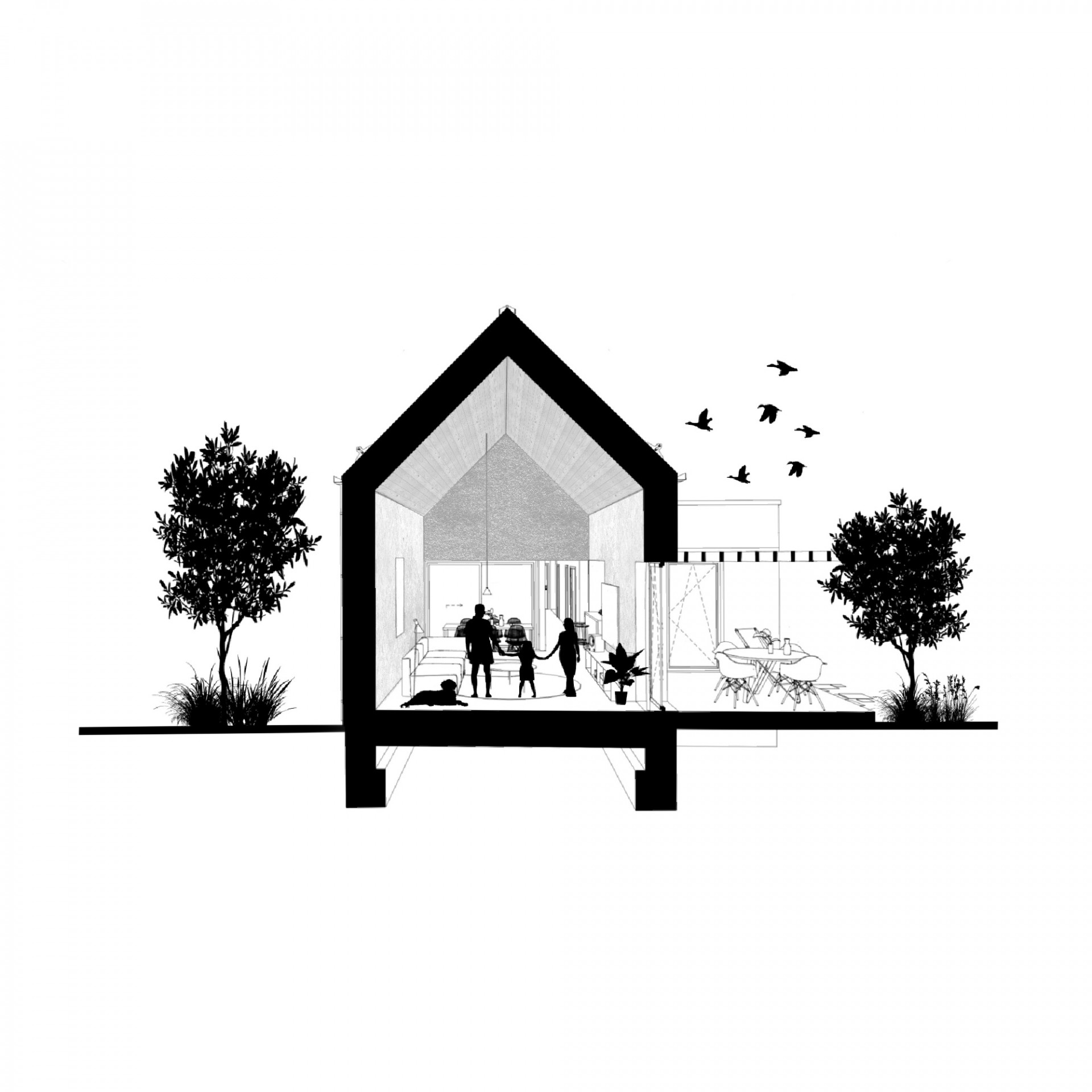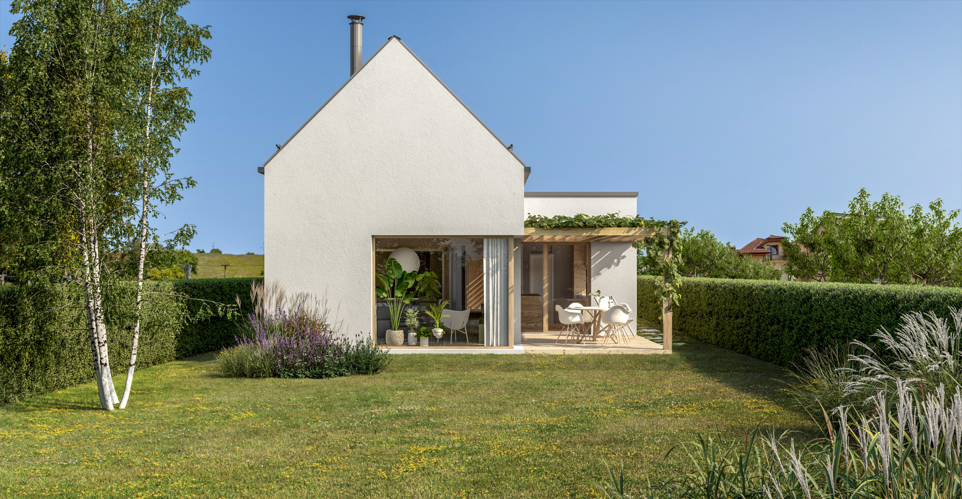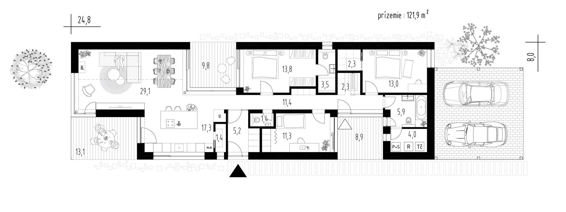 Dom vďaka svojmu átriovému riešeniu je vhodný na úzke pozemky rešpektujúc susedné domy. Strecha je riešená ako kombinácia striech - plochej a sedlovej, preto je možné dom osadiť do modernej aj tradičnejšej zástavby. Dispozícia domu ponúka množstvo svetla, intimity, zaujímavých priehľadov a zákutí pre užívateľa. Dom sa veľkorysými oknami doslova prepája s prírodou. Terasy je možné využiť pre záhradné aktivity alebo súkromný oddych, ktorý ponúkajú átriá. Výhodou riešenia sú dva možné vstupy do domu, ktoré riešia flexibilne dlhšiu dispozíciu. Hlavná obývačková zóna ponúka otvorený vzdušný priestor, ktorý si určite zamilujete. :)