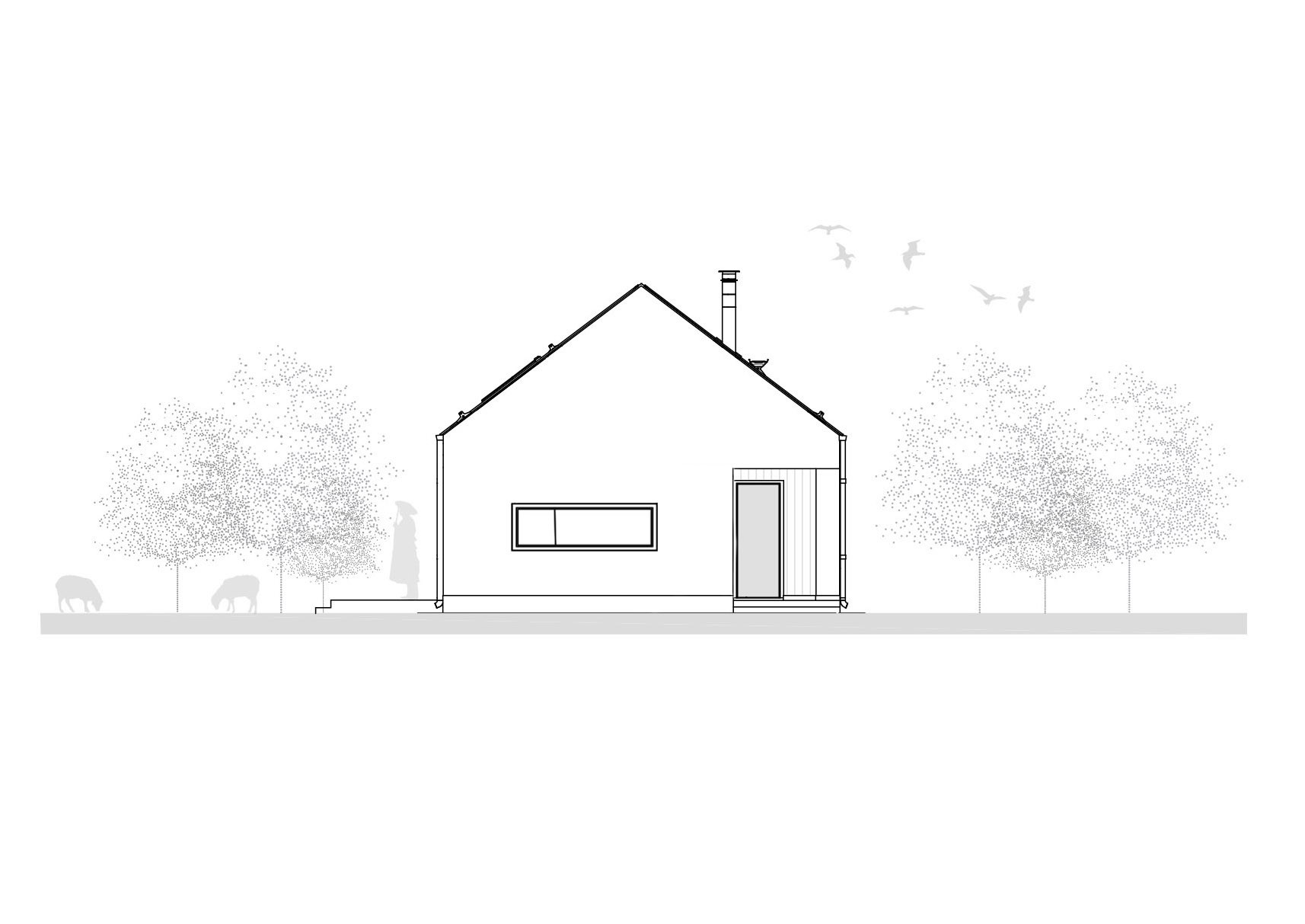Dom pod Tatrami vznikol na základe formovania okolitej architekúry so sedlovými strechami, ktorá je typická pre túto lokalitu, hlavne kvôli chladnejšiemu podnebiu. Želaním klienta bolo vytvoriť ekonomický dom, ktorý by spĺňal všetky ich požiadavky pre príjemné bývanie. Takto vznikol jednopodlažný praktický dom so sedlovou strechou, s bohato presvetleným interiérom a otvoreným podkrovím nad dennou časťou, so strešnými oknami, čo priestoru dodáva vzdušnosť. Dispozícia je čitateľne rozdelená na dennú a nočnú zónu s predpokladom vytvorenia moderného interiéru. Dom s heslom "v jednoduchosti je krása" vytvára príjemný dizajn, kde materiálové riešenie odzrkadluje dostupné prírodné zdroje okolia.
