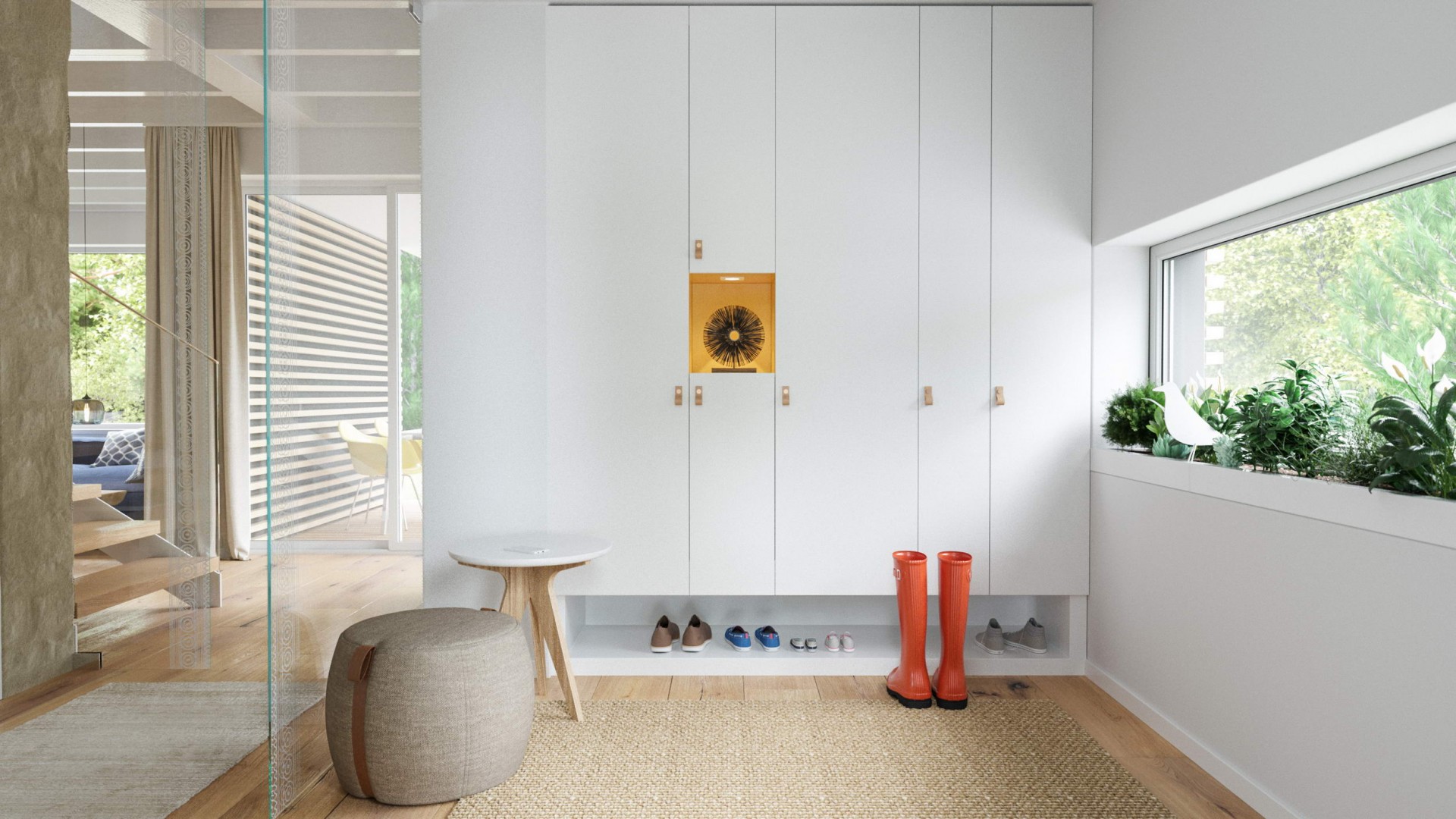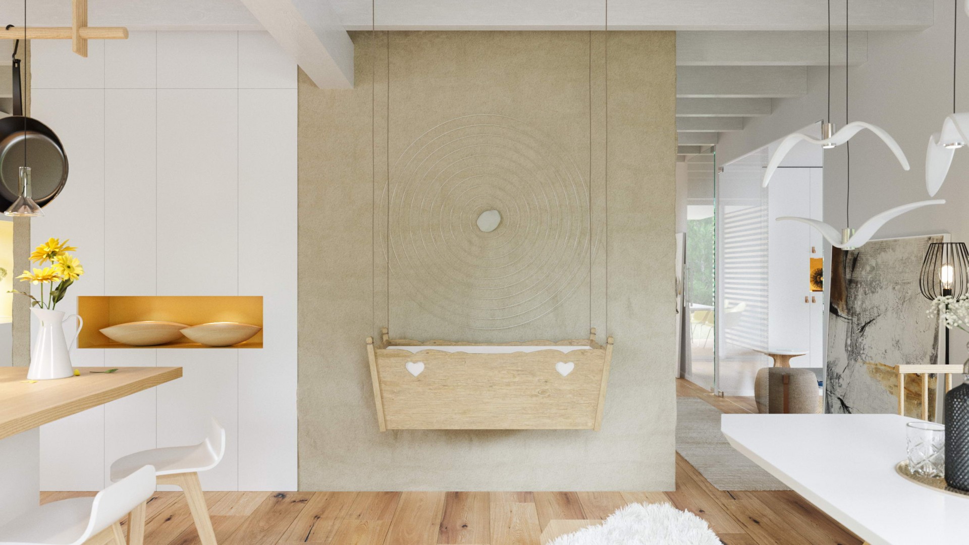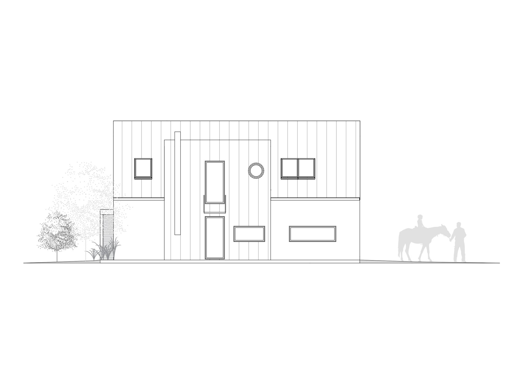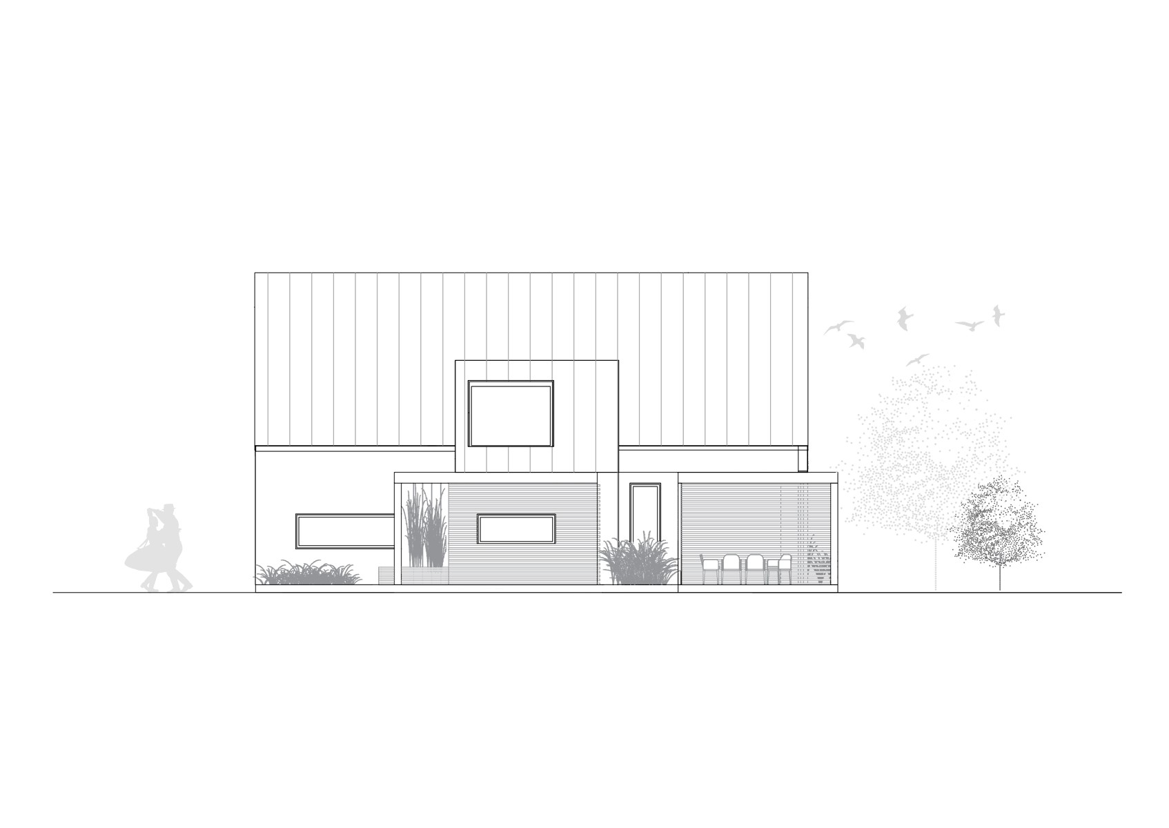 Dom v znení zaliaty slnkom, plný radosti a dobrej energie, so sedlovou strechou a drevenými prvkami, ktoré tvoria prevažnú časť fasády. Dispozícia domu sa otvára k exteriéru zo všetkých strán a tým za pomoci veľkých okenných otvorov maximálne komunikuje s prírodou. Izby sú väčšie, určené pre viac ľudí a tým sa dom snaží prehlbovať rodinné vzťahy :)