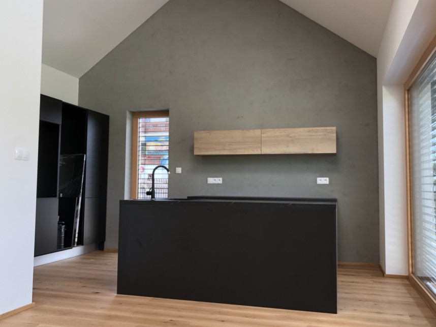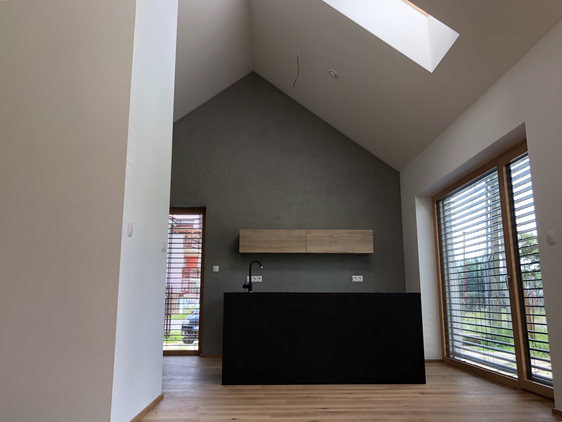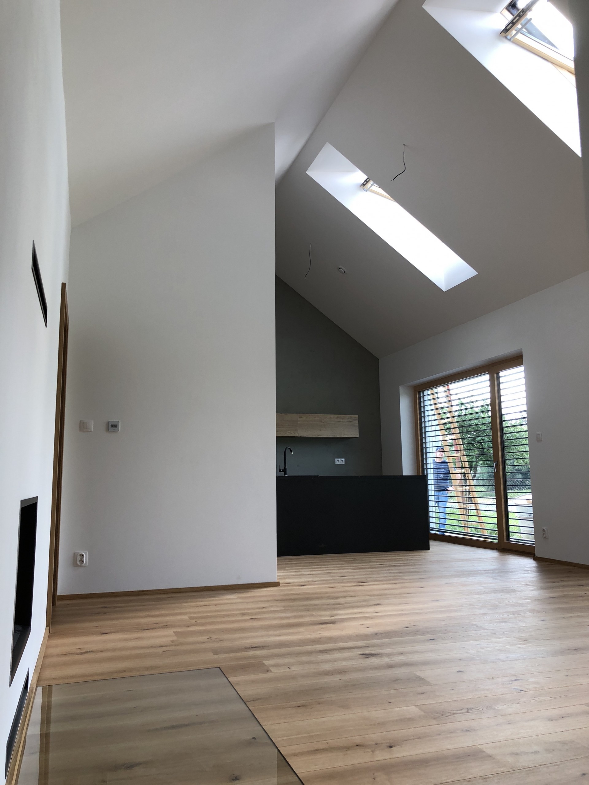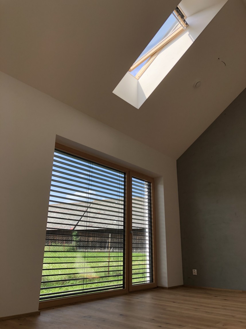 Realizovali sme náš jednopodlažný praktický dom so sedlovou strechou, s bohato presvetleným interiérom a otvoreným podkrovím nad dennou časťou so strešnými oknami, čo priestoru dodáva vzdušnosť. Je vhodný pre 4 členné rodiny. Výhodou je možnosť osadenia aj na užšie pozemky. Dispozícia je čitateľne rozdelená na dennú a nočnú zónu s predpokladom vytvorenia moderného interiéru. Dom má jednoduchú a zároveň vkusnú architektúru s prijemným materiálovým riešením, ktoré vytvára vkusný dizajn.